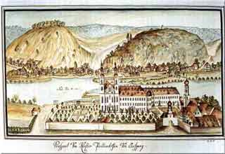 Auf eine frühe Besiedlung der Gegend um Pielenhofen schon zur Bronzezeit lässt der Fund von 25 Grabhügeln auf dem Pielenhofener Nordberg (Käferberg) der Berg, an dessen Fuß unser Haus steht schließen. Fünfhundert Jahre vor Christi Geburt ließen sich in Pielenhofen Kelten nieder, die nach der Völkerwanderung im 6. Jahrhundert von den „Männern aus Baia“, den Bajuwaren, verdrängt wurden. In dieser frühen Phase des merowingerzeitlichen bajuwarischen Landesausbaus dürfte auch der Name Pielenhofen in seiner damaligen Urform (vielleicht „Pyelnhof“ so wird der Ortsname im örtlichen Dialekt übrigens noch bis heute ausgesprochen) entstanden sein. [Prospekt des Klosters Pielenhofen an der Westseite der Naab mit dem heute bewaldeten Käferberg links im Hintergrund. Gut erkennbar ist die breite Furt, welche von Osten her zur Naab führt.] Zur Zeit Karls des Großen, also ca. 800 nach der Zeitenwende, war die Naab Teil des uralten Handelsweges vom Norden Deutschlands in den Süden. Die Naab verlängerte schifffahrtstechnisch die Reichweite der Donau nach Norden, wo insbesondere in Naabburg die älteste mittelalterliche Handelsverbindung zwischen Ost und West, die so genannte „Goldene Strasse“ kreuzte. Von dort und auch südlicher von Burglengenfeld aus wurden Waren verladen und über die Naab zur Donau gebracht, welche eine weitere Verschiffung ostwärts nach Straubing, Passau und schließlich Wien sowie auch westwärts nach Ulm ermöglichte. Bereits im frühen Mittelalter war also der Frachtverkehr auf der Naab beträchtlich. Zu der in Ost-West-Richtung verlaufenden „Goldenen Strasse“, deren Güterverkehr über die Naab auch nach Süden zur Donau geführt wurde, gesellte sich im Hochmittelalter die in Nord-Süd-Richtung verlaufende „Bayerische Eisenstrasse“, welche ab Amberg südwärts eine Wasserstrasse über die Naab darstellte. Die vielen Eisenhämmer an der Naab und auch der Vils brachten ihre Erzeugnisse mit Lastkähnen zur Donau. Bereits im 13. Jahrhundert wurde die Wasserkraft der Flüsse Naab und Vils genutzt, um Blasbälge und schwere Hämmer für die frühen Eisenhütten anzutreiben. Damit begann der Aufstieg der Region zu einem mitteleuropäischen Zentrum der Eisenindustrie. Für die vielen eisenverarbeitenden Handwerkszweige vom Blechschmied bis zum Plattner, vom Nagelschmied bis zum Werkzeugschlosser, war das Oberpfälzer Eisen die Rohstoffgrundlage. Auch für Pielenhofen ist ab dem 15. Jahrhundert ein noch heute als Gebäude existierendes Hammerwerk bezeugt. Anfang des 17. Jahrhunderts, also erst gegen Ende dieser Zeit der „Hammerherrlichkeit“, welche mit Ausbruch des dreißigjährigen Krieges niederging, wurde in Pielenhofen ein Holzkohlehochofen gebaut. Um die Wende des ersten christlichen Jahrtausends entstanden die ersten Rittergüter und Ritterburgen, von denen auch in der Nähe Pielenhofens wohl gegenüber der Freyung eine gestanden hat. Diese Ritterburg gehörte dem Ritter Ulrich von Pyelnhof. Anno 1068 wird der Ort Pielenhofen schließlich erstmals in einer Schenkungsurkunde erwähnt. Aus dieser Urkunde geht hervor, dass der Edelmann Adalbero an einem Ort, der Pulenhouven genannt wird und an dem seine Schwester Tuta lebt, den Altar Mariens geschaffen hat. Wenige Kilometer westlich von Pyelnhof in Münchsried (Monechrivte) bestand ursprünglich ein adeliges Nonnenkloster nach der Regel des heiligen Bernhard. Da sich dieses Kloster in einem überaus baufälligen Zustand befand, verkaufte Ritter Ulrich am 2. Februar 1240 nach inständigen Bitten der Nonnen sein 1137 hier erbautes Jagdschloss für 50 Pfund Regensburger Münzen an die Äbtissin Irmgard vom Zisterzienserorden. Aus einer weiteren Urkunde vom 12. März 1240 geht hervor, dass Bischof Siegfried von Regensburg den Nonnen des im Jahre 1098 gegründeten Zisterzienserordens die Kirche Pielenhofen mit der Auflage übertrug, daselbst zu Ehren Gottes und der heiligen Maria ein Kloster zu gründen. Das Kloster an der Westseite der Naab erhielt den Namen "Portus Marianus Maria am Gestade" Der Ort an der Ostseite der Naab hieß Pielenhofen oder Pulenhouven. [Kloster Pielenhofen (Ostseite).] [Kloster Pielenhofen (Westseite), wieder mit dem Käferberg im Hintergrund.] Im Jahre 1372 besaß das Kloster eine Mühle und eine Brauerei. Durch den Glaubenswechsel des Herzogs von Pfalz-Neuburg, zu dessen Herrschaftsbereich Pielenhofen damals gehörte, wurde 1542 das Kloster der Zisterzienserinnen aufgehoben. Nach einer vorübergehenden Zeit des Protestantismus, welche bis 1614 dauerte, kauften die Mönche der Fürstabtei Kaisheim bei Donauwörth im Jahre 1655 das Kloster Pielenhofen zusammen mit dem Ort Pettendorf vom Herzog um 18.000 Gulden. Die weißen Mönche der Zisterzienser bauten das bestehende Brauhaus aus und errichteten den heute noch erhaltenen vorderen Hauptteil des Klosters. Die bestehende Kirche wurde abgetragen um dem von 1717 bis 1738 dauernden Bau der herrlichen barocken Hallenkirche nach den Plänen des Baumeisters Franz v. Beer aus Vorarlberg Platz zu machen. [Kircheninneres.] Bei dem Kloster handelte es sich um ein landsässiges Kloster, d. h. die Äbtissin zählte zu den Landsassen, gehörte als „Prälatin“ zum „Landstand“, sie wurde in der „Landtafel“ geführt und war Mitglied des „Landtages“, der Vertretung der Stände. Das Kloster stellte mit seinen Besitzungen eine klösterliche Hofmark dar, in der die Äbtissin nicht nur grundherrliche Rechte ausübte, sondern auch über Gerichtsrechte verfügte. In Pielenhofen saß dem Klostergericht aber nicht die Äbtissin vor, sondern ein Klosterrichter. 1726 wurde das heute als Pfarrhaus dienende Haus des Klosterrichters errichtet. Malefizfälle, Verbrechen also, die zur Todesstrafe führen konnten, unterstanden der Gerichtsbarkeit des Landesherren. Im Jahre 1803 mussten die Zisterzienser im Zuge der Säkularisation das Kloster verlassen. Der größte Teil der Wirtschaftsgebäude des Klosters ging in Privathände, der Wald 